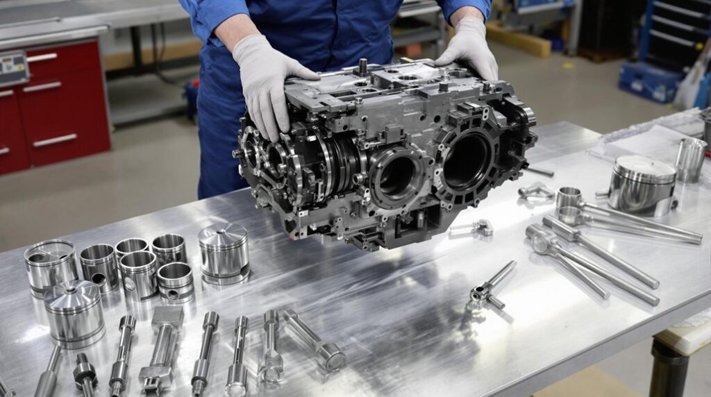 After completing the visual assessment phase, you must subject each component to rigorous material testing procedures before proceeding with the rebuild process. Begin with pressure testing to verify cooling system integrity and combustion chamber sealing using specialized pumps that identify deteriorated gaskets or cracked liners.